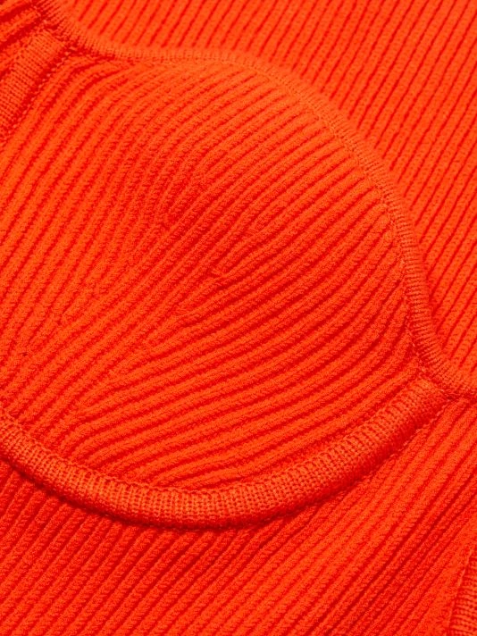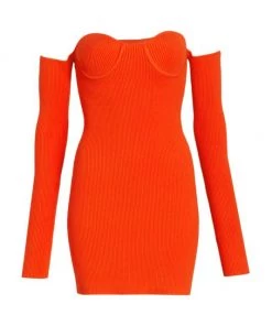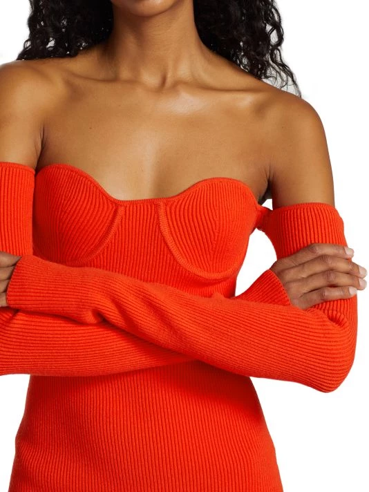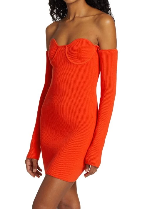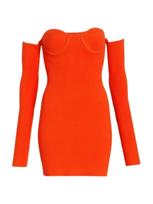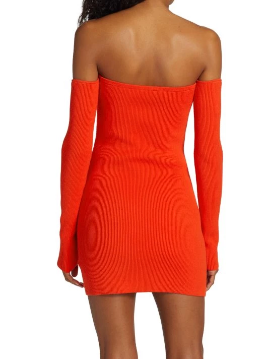 Designed for Helmut Lang, the Countour minidress is made of rib-knit fabric. The fitted style is finished with an off-the-shoulder neckline and long sleeves.