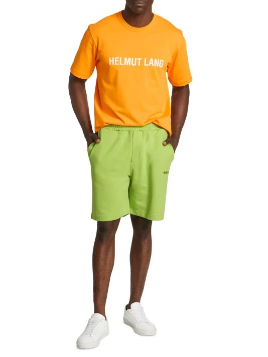 A classic pair of sweat shorts featuring Helmut Lang logo at left pocket.