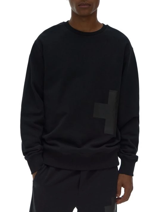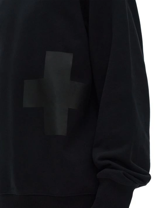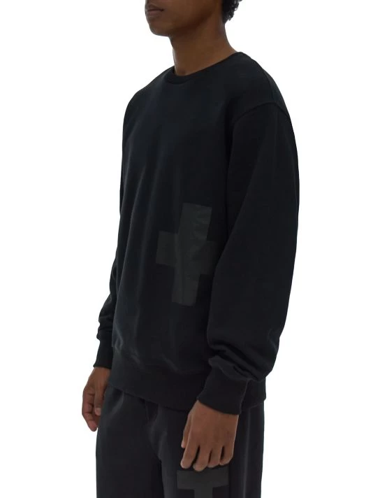 This fleece crewneck sweatshirt is adorned with a Lifeguard-inspired cross motif on the side.