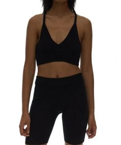 Helmut Lang’s micro bra top is crafted of bonded jersey, detailed with a V-neck and racerback.