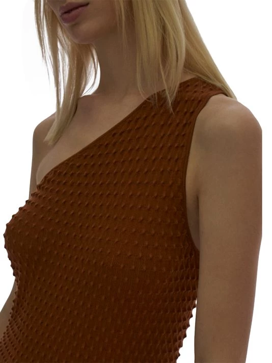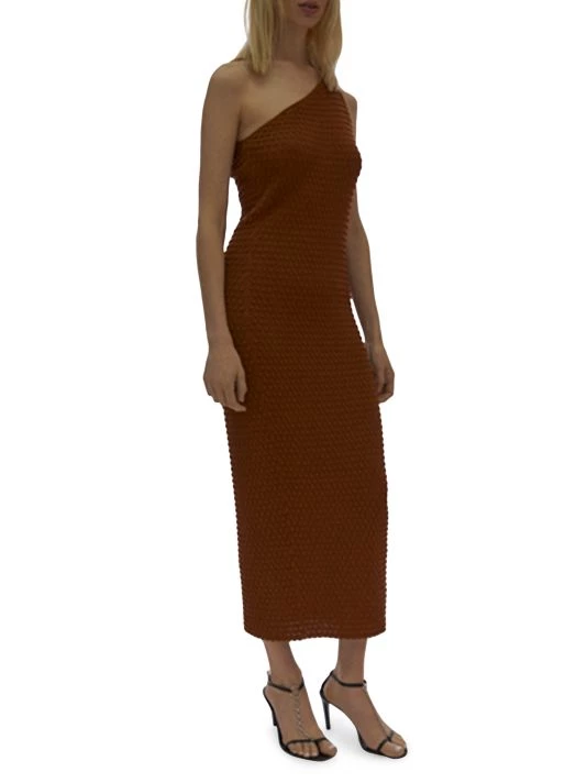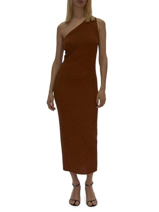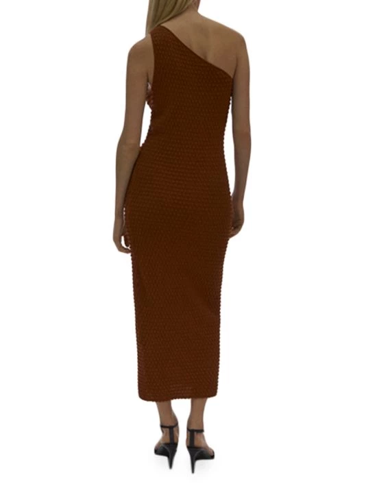 Minimalist design is a mainstay of New York-based label Helmut Lang. Crafted of textured stretch fabric, this midi-dress is designed in a fitted one-shoulder silhouette.