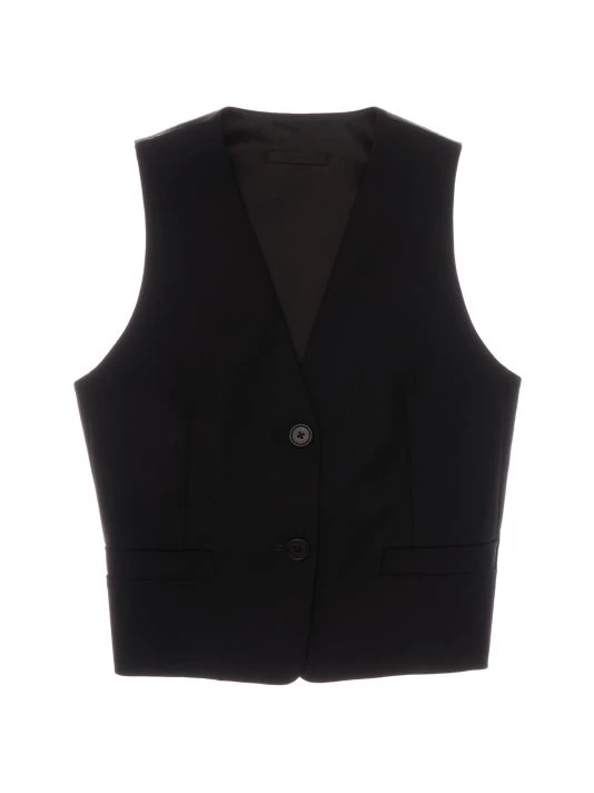 Helmut Lang is famous for its uniquely minimalist designs inspired by the elevation of everyday wear. Crafted of a stretch wool blend, this cropped vest is designed in a tuxedo style.