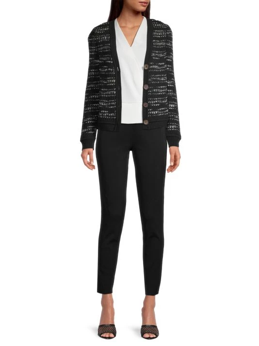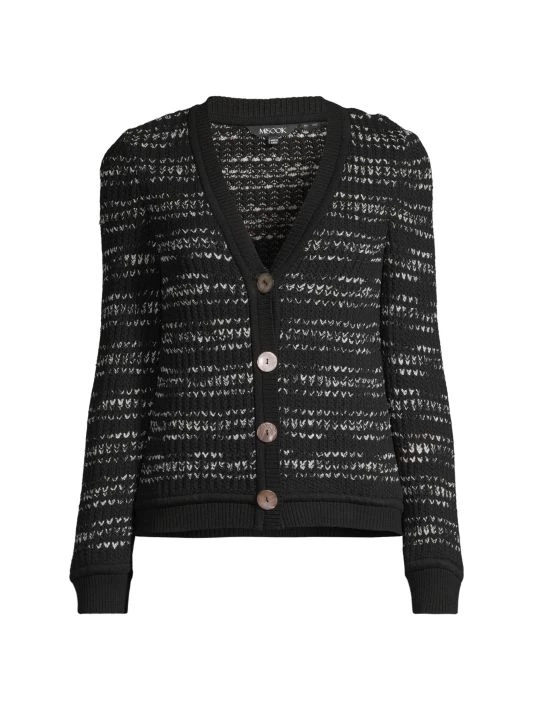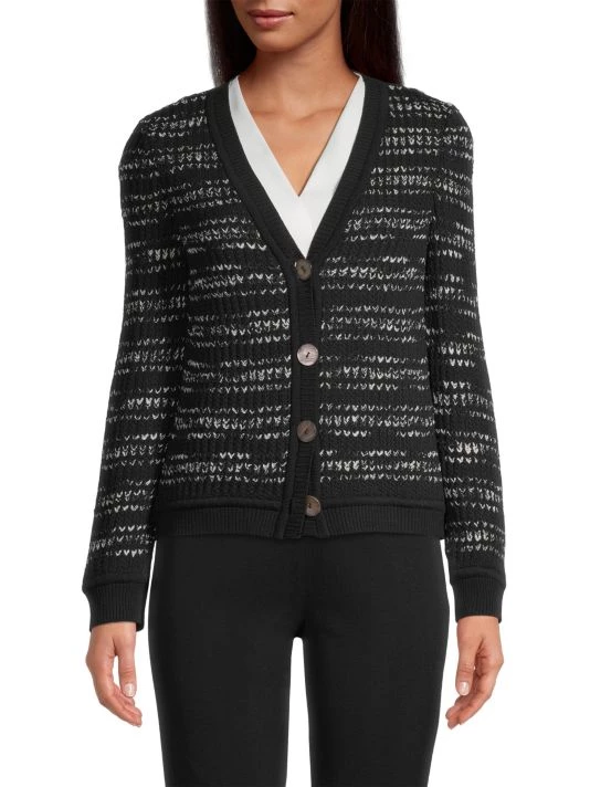Crafted of a lightweight, ultra-soft knit, Misook’s wrinkle-resistant cardigan is fastened with large shell buttons for a bold touch.