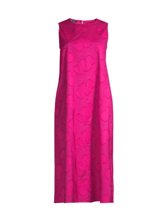 This relaxed, sleeveless Misook midi-dress is crafted of lightweight floral burnout cotton.