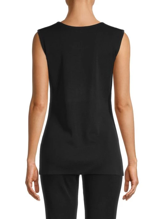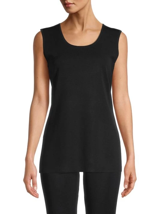 Cut from a rib-knit construction, Misook’s classic long tank features a crewneck.