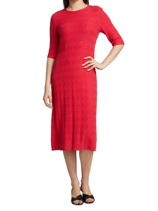 This feminine A-line dress is knit into a plaid pattern.