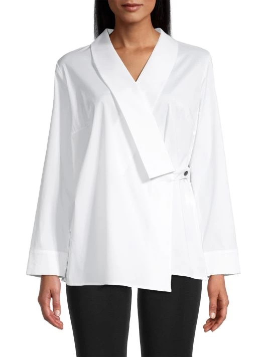 Flaunting a wrapped silhouette that comes together at the waist, Misook’s blouse is crafted of soft breathable cotton. This architectural piece is finished with a folded neckline for added sophistication.