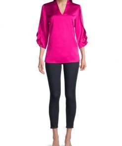 Misook Tulip-Sleeve Crepe De Chine Blouse